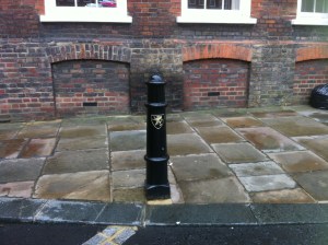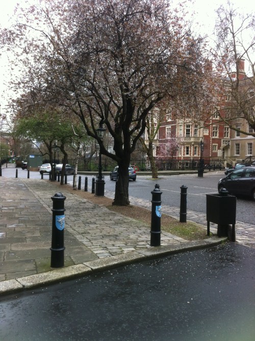 6. Inner Temple – blossom trees, buildings and Pegasus crested bollards…