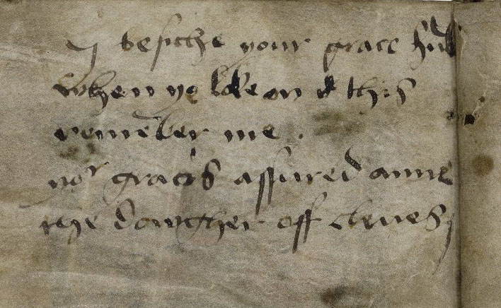 Inscription in the Book of Hours from Anne of Cleves to Henry the VIII:
